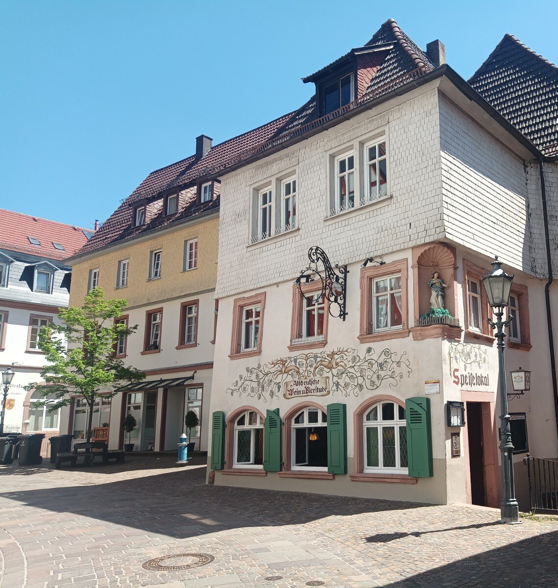 Das unter Denkmalschutz stehende, fast 500 Jahre alte Gebäude liegt in der Fußgängerzone im Zentrum Hirschhorns – der Perle des Neckartals.